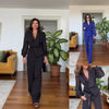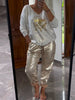 Women’s Two-Piece Outfit | V-Neck Long Sleeve Top & Glitter Pants Set | Spring/Summer
